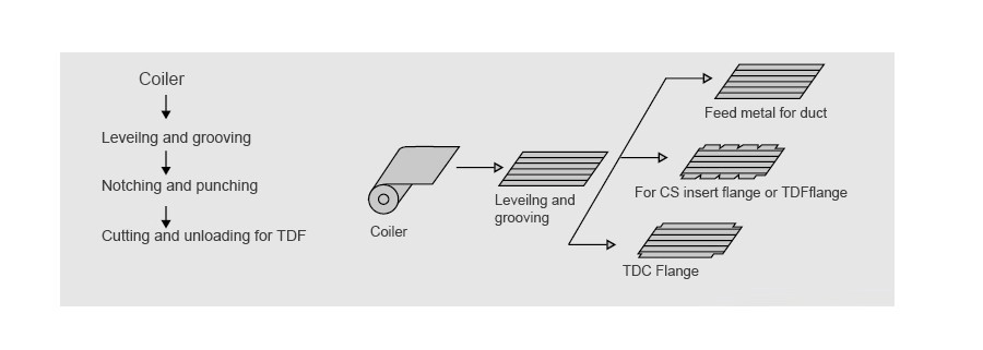 LiDa auto duct production line II consists of a metal frame,leveling and beading machine, punch and punch square oil press, hydraulic shears, The control part adopts automat-ic computer control, the control system is a closed-loop feedback system, the production of precision and stability are obviously improved. The maximum op-erating speed is 16m/min..Length error of ± 0.5mm ± 0.8mm, diagonal error.