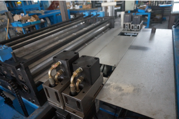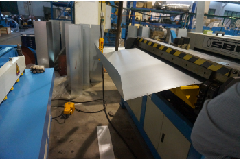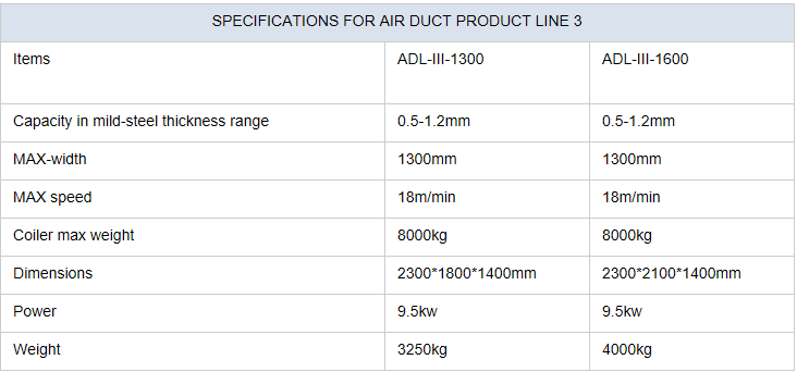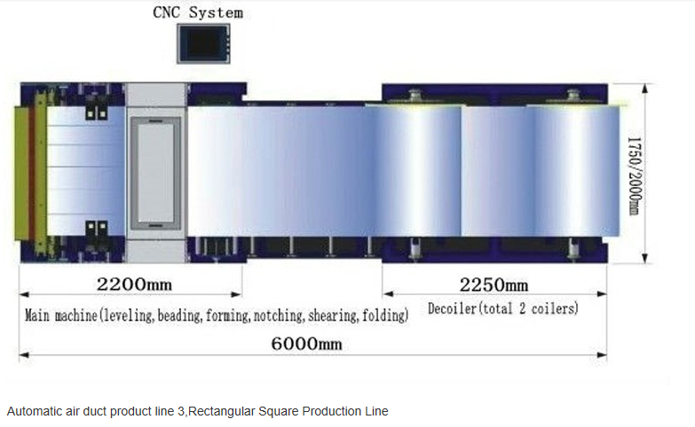 Wind pipe production line Ⅱ,Ⅲ line is on the rack,leveling beading machine,red beak and red square mouth machine shears(Ⅲ line bending).Electrical control with full computer control,the control sysytem has a closed loop feedback system,significantly improved production accuracy and atability,and its maximum operating speed of 12m/min ,the length of error of ±0.5mm/m diagonal error of ±0.8mm/m supporting on the rack according to customer requirements.