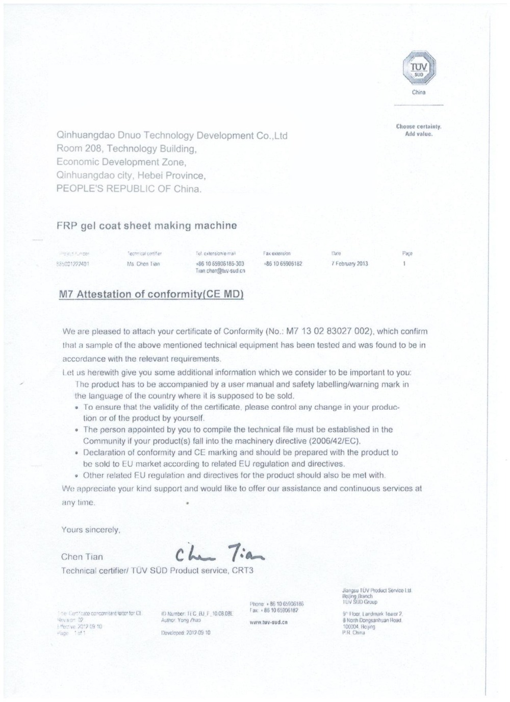 | We are professional manufacturer of FRP sheet production line. We are the first and best-selling company in China. DNUO has occupied more than 60%-70% domestic market with obvious advantages. In oversea market, our machine has exported to the USA,Saudi Arabia, Jordan, India, Indonesia, Malaysia , Vietnam ,Azerbaijan etc. |