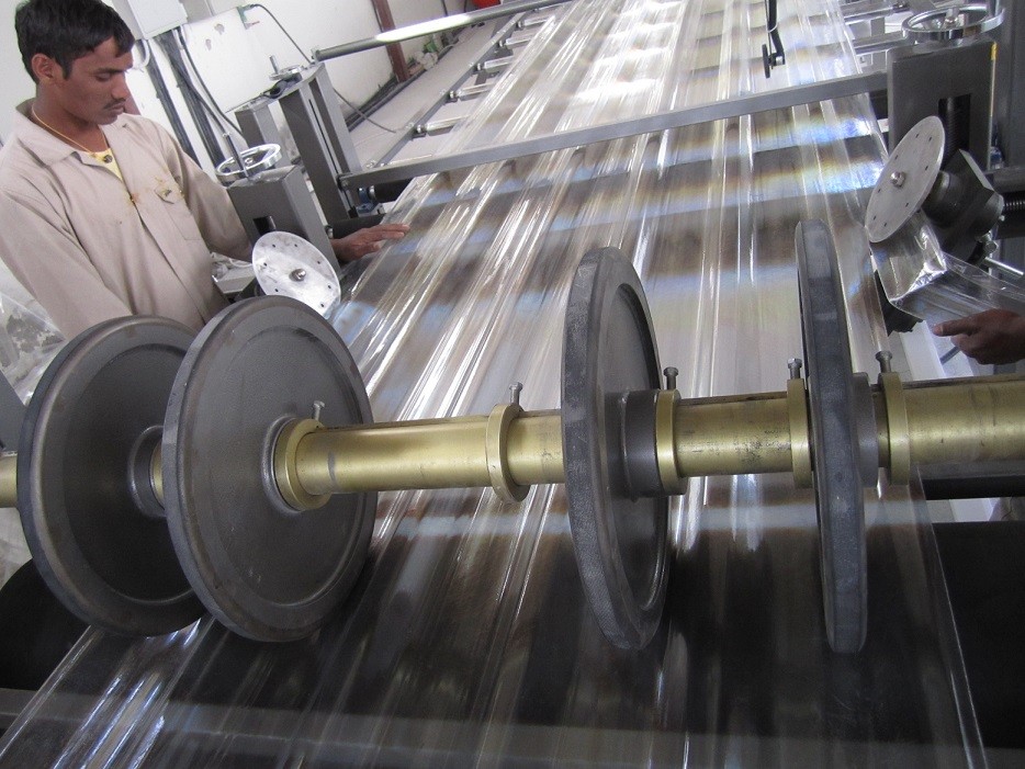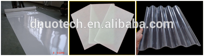 This production line is able to produce lighting sheet, color sheet, common flat sheet or gel coat sheet.