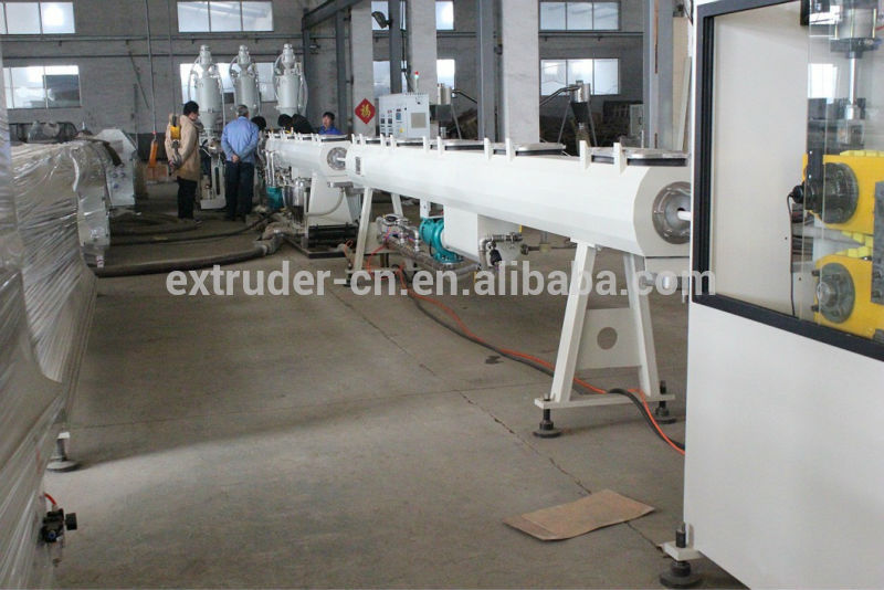 This extrusion line adopts high efficient barrier type screw, specially designed for PP-R material, high quality high speed extrusion, high shear stress and low temperature to ensure that raw materials can be extruded with high performance. The measurement on the feeder with the drying system can guarantee the PP-R material uniformed extrusion.
