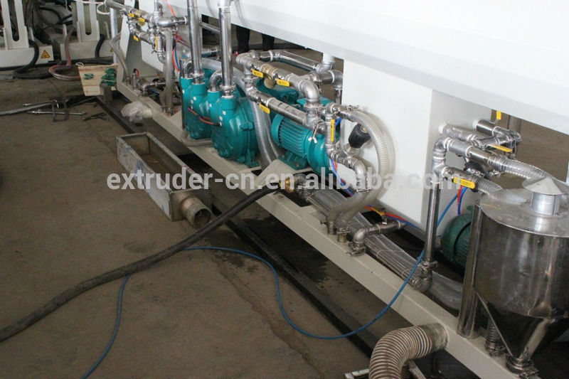 Vacuum calibrating tank and water spraying cooling tank adopts advanced water circulation, high pressure cooling system, installed with vacuum degree adjusting device and automatic water temperature and water level controlling system. All the pipelines are made of stainless steel to avoid rustiness.