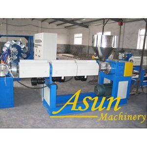 This extrusion machine is used to produce PVC fibre hose, which has three layers, the ourter and inner layer are made of soft PVC, middle layer is terylene fibre, which has good chemical and physical property. It is mainly used for the transportation of high pressure or corrosive gas, and is widely used in the machinery, coal mine, oil, chemical, agriculture irrigation and buildings.