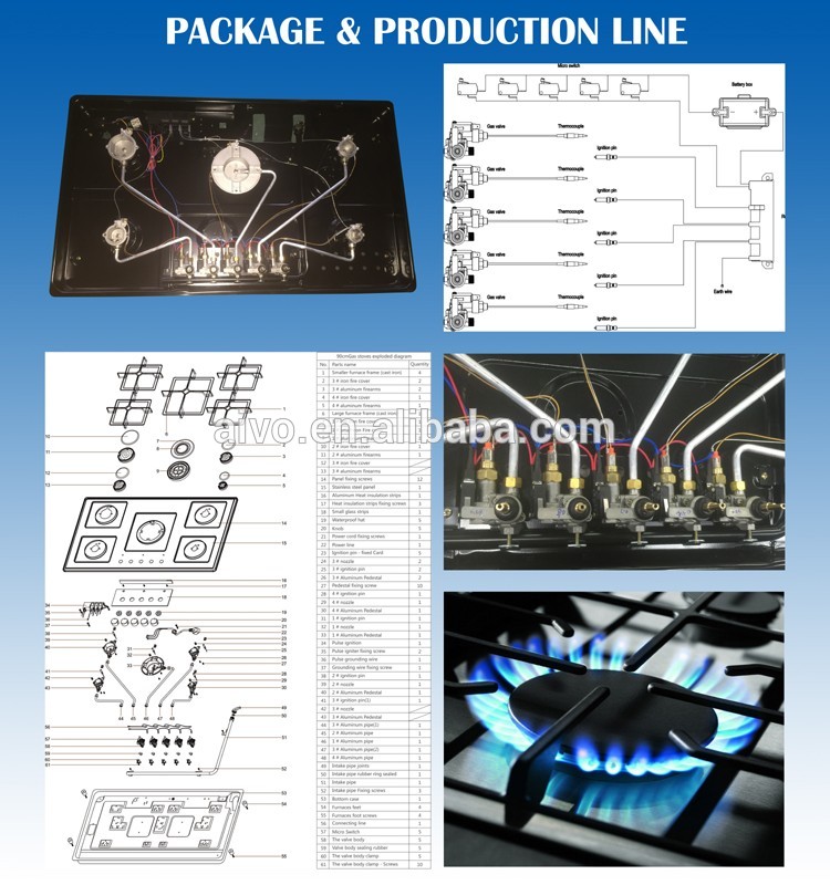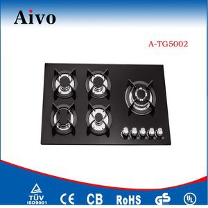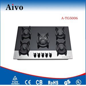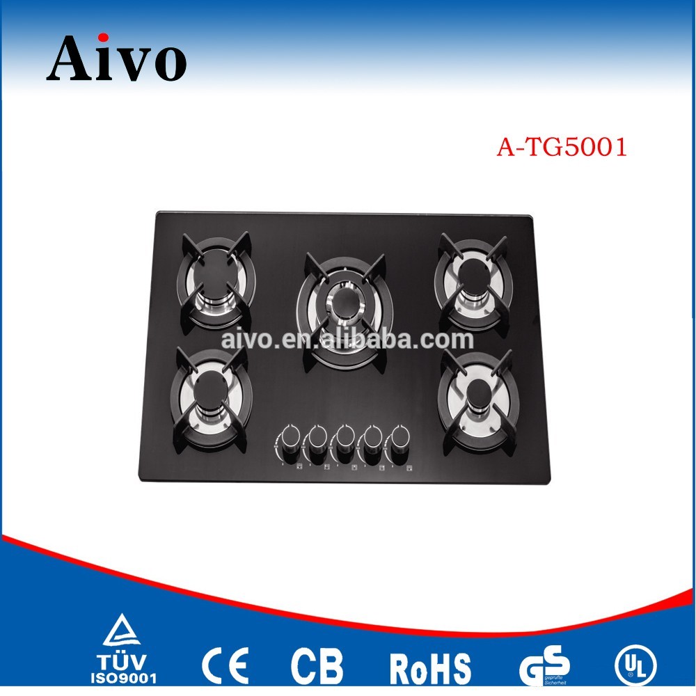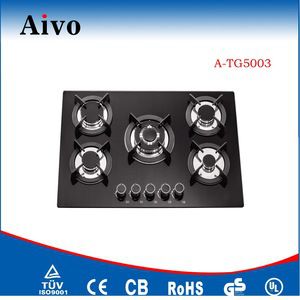 Aivo buil-in 5 burner terpemed glass gas cooker gas stove