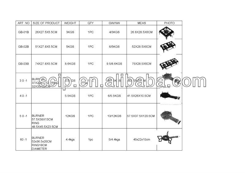 cast iron gas burner MATERIALCast iron PACKINGin cartonsCERTIFICATESGS ITS BV FDALOGO AS YOU DESIGN