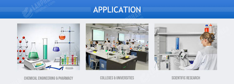 - Medicine: various application in laboratory of quality control, research and development departments: distillation/concentration/drying;