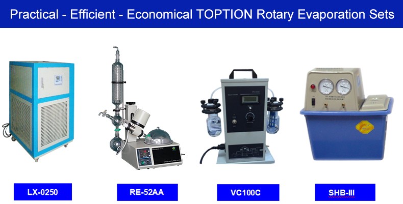 Vacuum pump is the prerequisite device for rotary evaporator, TOPTION provide SHB-III vacuum pump for 1L ~ 10L laboratory rotary evaporator, SHB-B95 vacuum pump for industrial rotary evaporator, and 2XZ also supplied for rotary evaporator, etc. But using cold trap or other methods provide corrosion protection is more better.