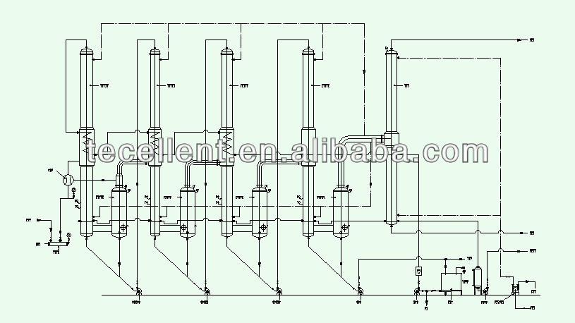 4. Equipment suitable for evaporation and concentration of foamability material Liquid film evaporated in heating tube formed liquid-vapor separate. Big part of feed drIiauid extracted from the bottom of cylinder. Only small part of feel liquid and all second steam enforced to separate Feed liquid not in big impacted no foam formed in the whole process.