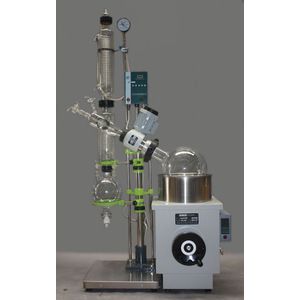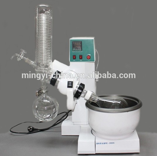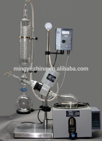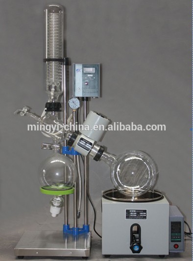 Rotary evaporator is mainly used in pharmaceutical, chemical and bio-pharmaceutical industry concentration, crystallization, drying, separation and solvent recovery. The principle is: under vacuum conditions, constant temperature heating, the rotating bottle constant speed rotation, a large area thin film material is formed in the sidewall, efficient and evaporated. The high efficiency glass solvent vapor condenser cooling, the recovery in the collection bottle, greatly improving the efficiency of evaporation, especially selected for high temperature easily decomposed denatured concentrated purification of biological products.