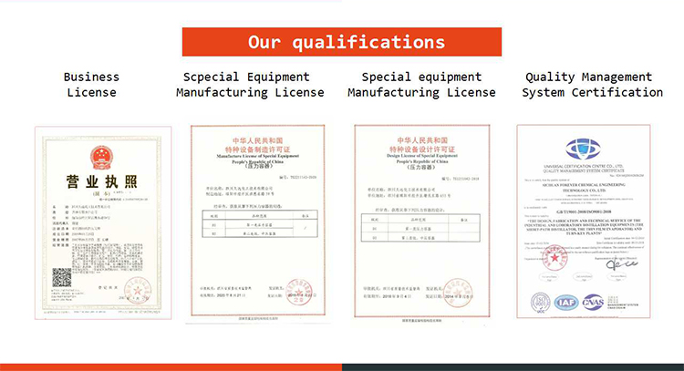 SiChuan Forever Chemical Engineering Technology Co., Ltd. (FOREVER) (formerly named MianYang Forever M&E Manufacturing Co., Ltd.) is a subsidiary company of SiChuan forever holding Co., Ltd which is invested by China Academy of Engineering Physics (CAEP). The main products and services include:Short path distillator /molecular distillation apparatus;Thin film evaporator;Fractionation column;Heating circulator;Jet mixer;Distributed Control System(DCS);Turnkey plant;Tests of distillation/fractionation;Toll processing.