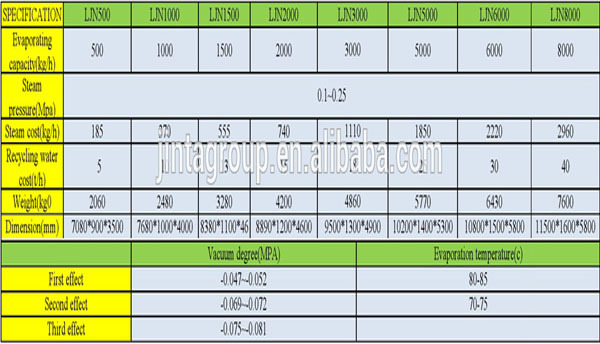 1-effect evaporator | 1 ton | 1.2 ton | 60 ton | 7.5kw*h |