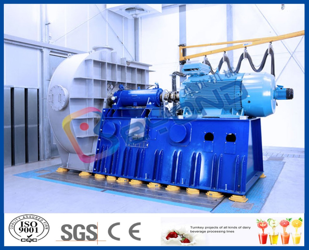 Mechanical vapor compression MVR or MVC (Mechanical Vapor Compression) evaporator, the principle is to usethe secondary steam which is produced through compressing the steam by the steam compressor , secondary steam heat and temperature is increased by the compressor, steam compressed into the evaporator as the heat source, again makes the raw material liquid start evaporation, so there is no need to rely on external fresh steam, just need to rely on the evaporator system itself circulating to achieve the purpose of evaporation. Through the PLC control system, configuration software and engineering software to control the temperature, pressure, speed motor system, maintain stable, intelligent and efficient operation of the evaporator.