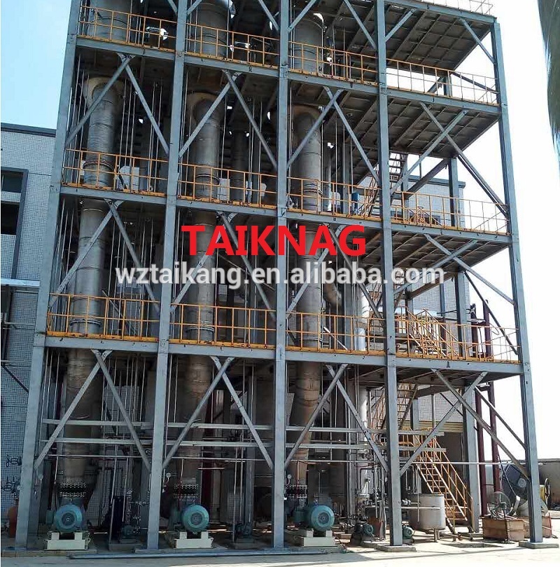Triple-effect falling film evaporators mainly adapts in continuous evaporation and concentration under low temperature,Can process milk,glucose,starch,xylose,pharmaceutical,biological engineering,environmental protection,waste liquid recycling etc; Especially suitable for processing the material with character of heat sensitive,viscosity and foamability. The machine has characteristics of high heat transfer efficiency,material heating In short time etc.