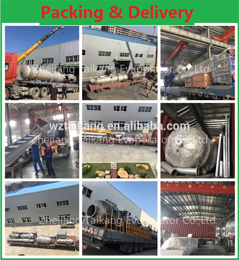 2. Feed liquid evaporated while accelerated flow downward along the pipe wall that suitable for evaporation and concentration of high viscosity material.
