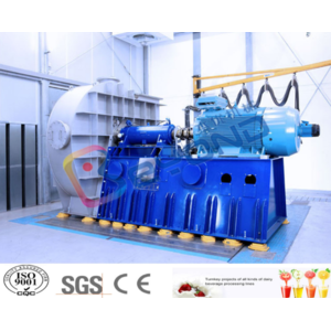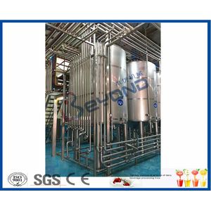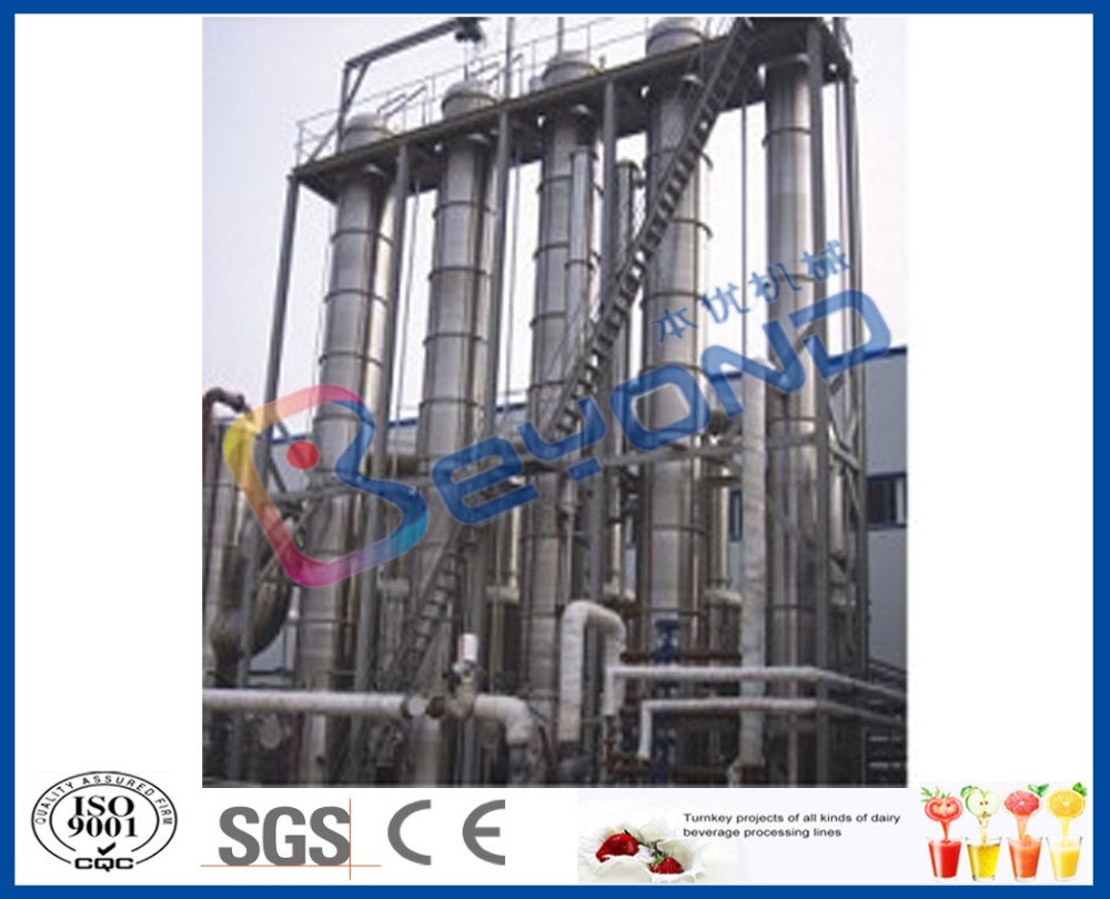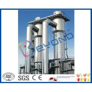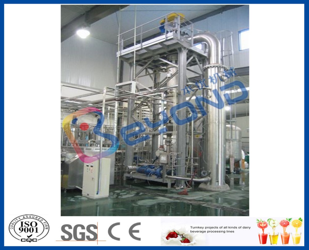 The level in the flash evaluation tank takes an auto pressure difference level imported to keep the balance. The level in condenser is monitored by an automatic Koker. The uncondensed gas is pumped out in vacuum and water after condensed will be cooled again through a plate-type condenser to recycle. The cooling temperature is controlled by BURKET seat valve and Denmark TEMPRESS temperature sensor. The level in the balance drum is auto controlled by electrode level, and all gas-valves are operated by SIEMENS PLC, which help to finish the flash evaluation gas removal and CIP washing process