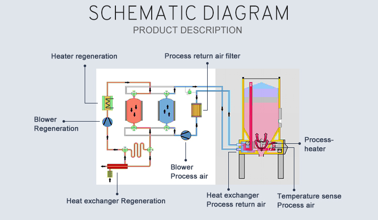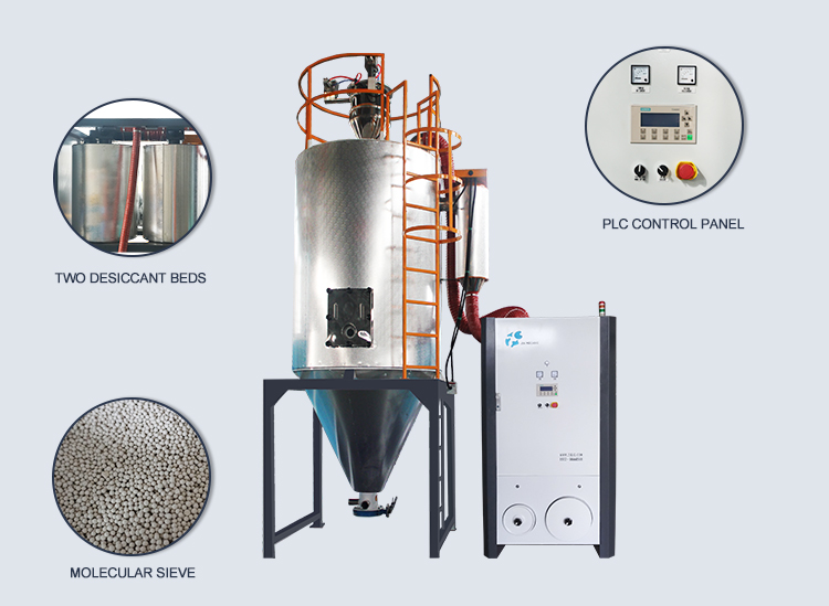 Efficient Industrial Plastic Drying Machine Dehumidifier For PE/PET/PVC/PA/ABS Pellet Drying