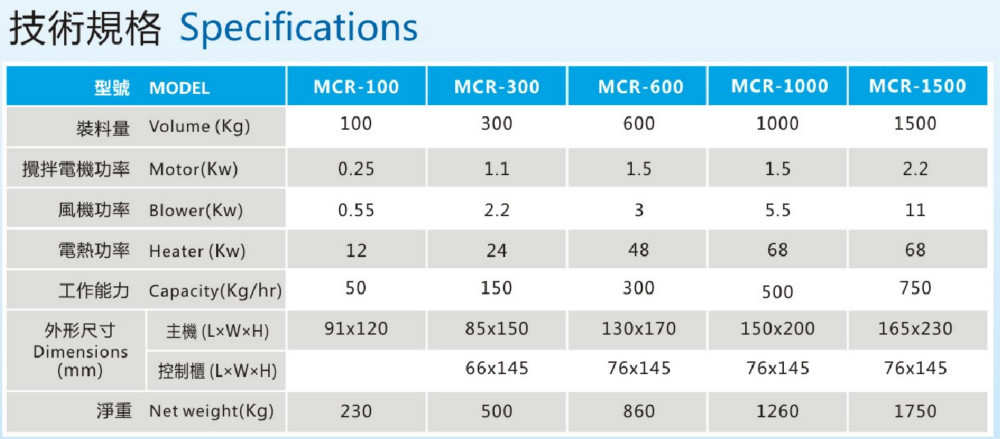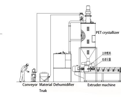 MCR closed-loop crystallizers are used for constant crystallizeation of uncrystallized PET regrinds or pellets, Processed materials can then be dried and dehumidified directly.