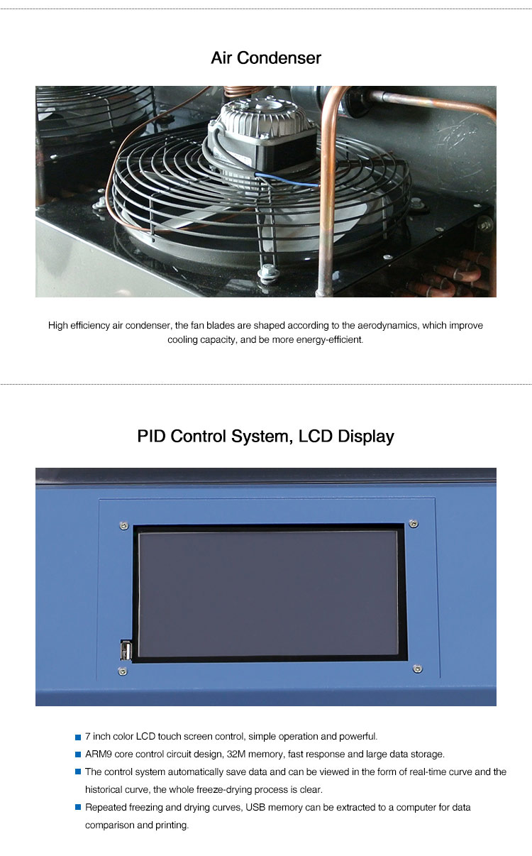4. Many biological products, drugs, food in the water and heat under the action is easy to produce degeneration or decomposition, in order to long-term preservation, the most appropriate way is to freeze at low temperatures dry.