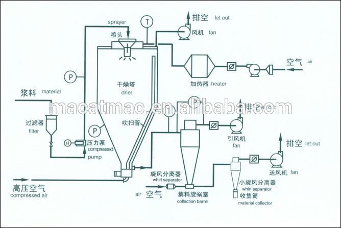 2. Contact of hot airflow and fogdrops: When enough hot air enter into drying tower, the flow way and angle have to considered, no matter co-current flow, adverse current or mixed flow, must insure the sufficient heat exchange, it is cruicial.