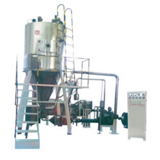 After filtering and heating, the air enters into air distributor on top of the Drying Equipment. The hot air enters into the drying tower spiral form and uniformly. By .passing through high-speed centrifugal atomizer on top of tower, the material liquid will rotate and be sprayed into the extremely fine mist liquid beads. Through the very short time of contacting with heating air, the material can be dried into final products. The final products will be discharged continuously from the bottom of drying tower and from cyclone separator
