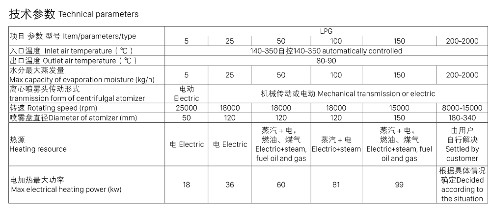 1. High speed drying. After liquid raw material being sprayed, its’ surface area will be increased greatly. With higher drying efficiency, 95%-98% of water could be evaporated in a few seconds. Drying time is very short, it is suitable for heat sensitive raw material