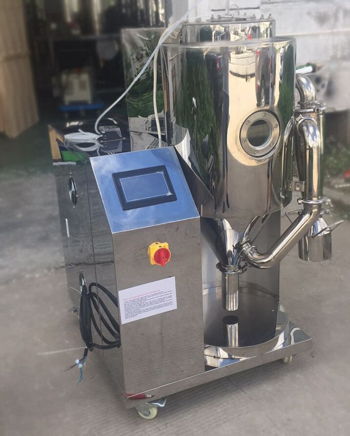 3l dryer machine with two-fluid spray customization assembles many of new design, for example, small size for free moving, combining air compressor and electrical heater inside the cabinet, glass spray and cyclone separator for inspecting. All the data and functions are controlled by PLC.