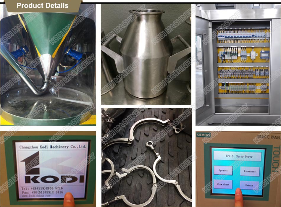 LPG lab spray dryer price is widely used in foodstuff, pharmaceutical and chemical industry, such as egg powder, amino acid product, protein, blood, food flavor, food ingredients, pectin, carrageenan, spirulina, herbal extraction, pigment, cocoa, mushroom, PAC, malt dextrin, collagen, juice, yeast, Coffee, Creamer, coconut, milk, gelatin, gum and acacia etc.