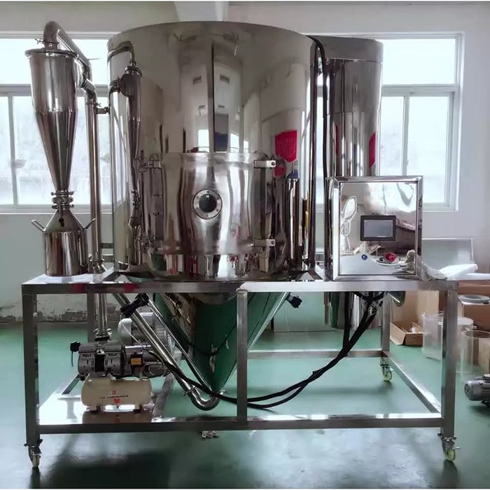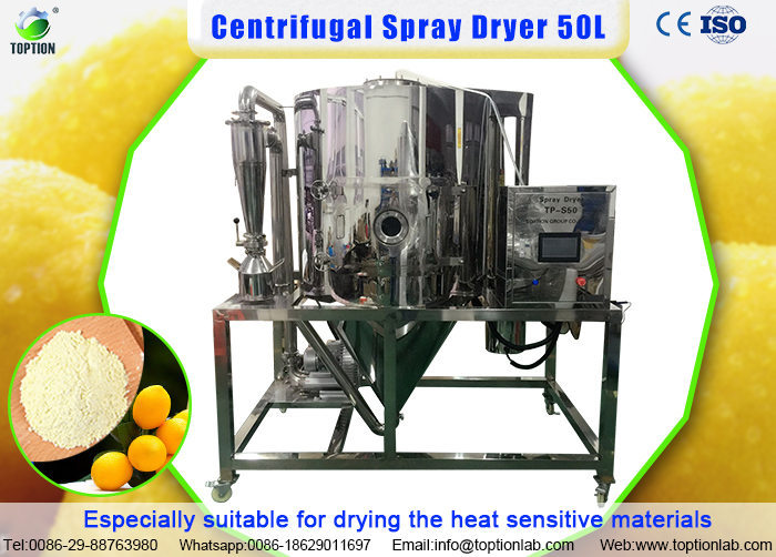 1. Quickly drying speed. Liquid material after centrifugal spraying, the surface area will increased greatly, in high temperature air flow, the moment will evaporate 95~98% of moisture content, so drying time will be about at ten seconds.