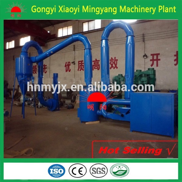 Wood dryer is suitable for drying materials like sawdust, rice hull, milling wheat straw, corn stalks and so on. The moisture of wet materials is at 20-30%. The wood dryer is equipped one fuel boiler, inlet, steel pipe, exhaust blower (fan), cyclone. Wet materials are input into the hopper. The fuel boiler generates hot air which mixes with wet materials and then is sucked into the pipes by the exhaust blower (fan) quickly. And then hot air is flowing and going though the curving pipes and buffer (drying chamber) of dryer, thus wet materials is finished to dry, and the dried materials are expelled out by the exhaust blower (fan). This wood dryer reduces the moisture to 8-12% with the advantages of lower cost consumption and high efficiency.