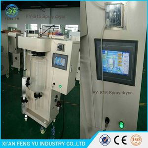 FENGYU Laboratory spray dryer according to different spray drying nozzle could classify as two-fluid spray dryer and centrifugal spray dryer, if you use it it in laboratory or small scale product, suggest choose two-fluid spray drying machineand its capacity is 1500ml/h to 3000ml/h, if you need 3000ml/h, 5000ml/h, 10000ml/h and larger capacity please choose centrifugal spray drying equipment.