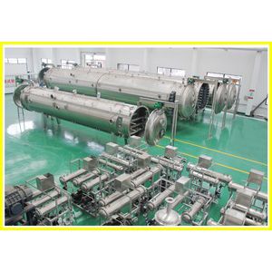A:Vacuum belt dryer is a continuous infeed and discharge vacuum drying equipment. Liquid product is conveyed into dryer body by infeed pump, evenly spread on belts by distribution device. Under high vacuum, the boiling point of the liquid is lowered; water in the liquid material is evaporated under low temperature, thus protect active ingredients in the product.