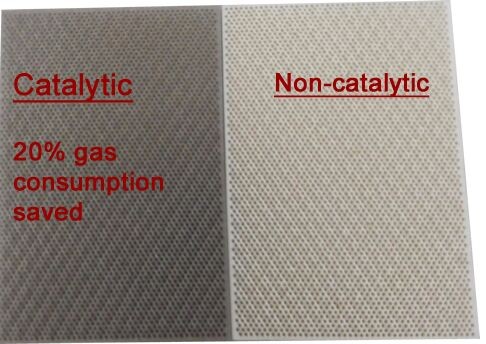 The black catalyst coating on the Cordierite honeycomb plates,makes the gas saving more than 20%,longer lifetime,less carbon monoxide,NOx and noise,also vent free when they were used for many times.
