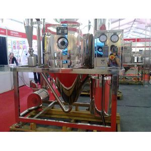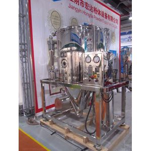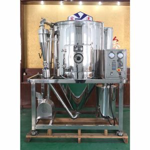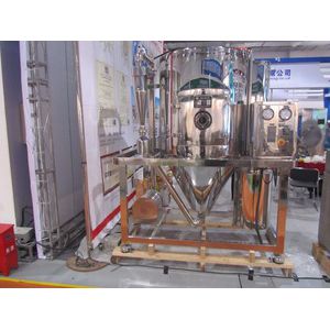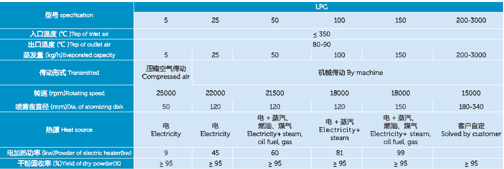 Working principle:Air through the filter and heater, into the dryer at the top of the air distributor, hot air spiraling evenly into the dryer. Material liquid by material liquid tank through the filter by centrifugal atomizer pumped to the top of the dryer, by tiny things material liquid spray droplets, contact material liquid and hot air flow, water evaporated quickly, within a very short time drying for finished products. Finished product by dry bottom and cyclone separator, waste gas discharge by fan.