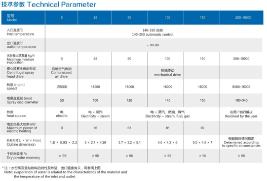 The centrifugal Spray Dryer is widely used technology in the liquid shaping technology and drying industry. It is suitable for producing powder, particle solid products from material of solution, emulsion, solidus and paste states. Therefore, when the particle size of the distribution final products, the residual water contents, the stocking density and the particles shape meet the precision standards, the centrifugal spray dryer is one of the most desired technologies.