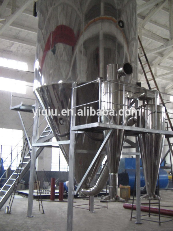 1.The drying speed is high when the material liquid is atomized,the surface area of the material will increase greatly.In the hot-air flow,95%-98% of water can be evaporated at a moment.The time of completing the drying is only several seconds. This is especially suitable for drying the heat sensitive materials.