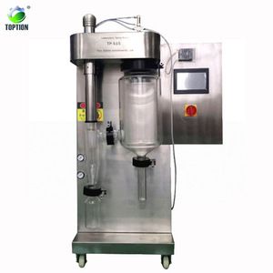 TOPTION Laboratory Spray Dryer assembles many of new design, for example, small size for free moving, combining air compressor and electrical heater inside the cabinet, glass spray and cyclone separator for inspecting. All the data and functions are controlled by PLC.