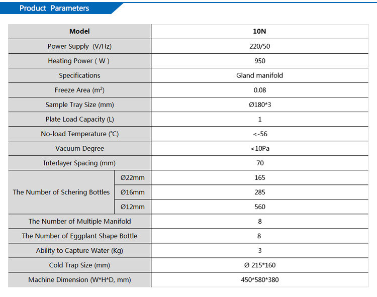 1. 10N Freeze Drying Machine is a small freeze drying machine, suitable for laboratory use or a small amount of production.