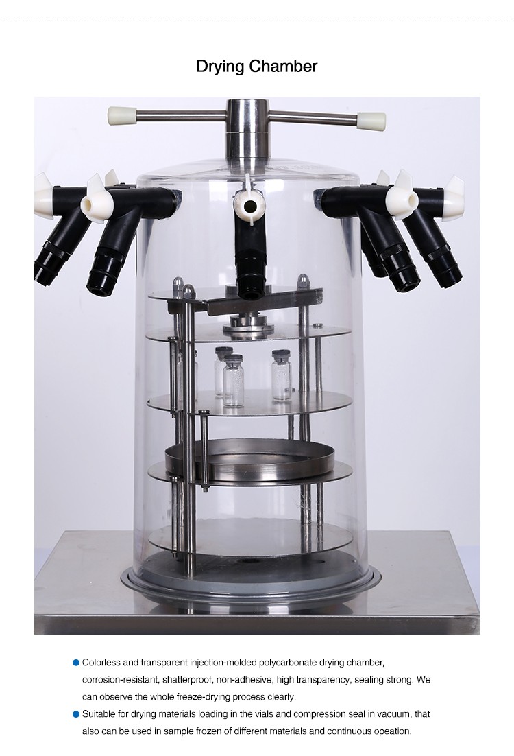 3. 10N Freeze Drying Machine adopts vacuum gland system, by manual operation, ensuring that the sample packaging in a vacuum state.