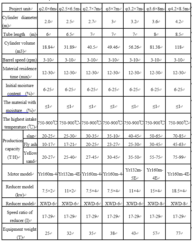 The main technical parameters of the LJSH Three return dryer are: (initial water < 15%, final water < 1%)