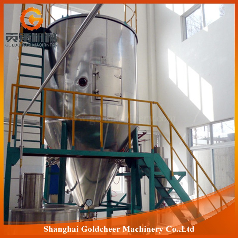 This equipment is used to dry solid liquid such as solution and suspending liquid. In the tower, the materials can be heated in short time and evaporated quickly and the temperature of heat exchanger is lower so that it has little impact on the solubility, color, flavor and nutrition of the product. Therefore, this equipment is widely used in the industries of food, medicine and chemical products, especially suitable to dry the heat-sensitive materials by spraying such as thick milk, soy milk, egg liquid, blood meal, medicament, yeast and food additives.