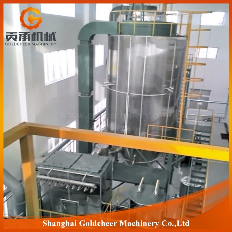 Shanghai Goldcheer machinery Co.,Ltd has made much experiment and research on spray drying. We adopt the multiple-gun spraying and cyclone powder collection technology to transport the powder to the tower top and make the powder attach with fog drop in milk production. We also adopt the second stage drying and cooling technologies by the vibration fluidized bed and the lecithin coating technologies. After attaching with the fog drop, the milk powder becomes the hollow granule and has its thermal physical property and solubility improved distinctly. The second stage drying and cooling technologies by vibration fluidized bed can prolong the dying time and save energy when the drying speed of the milk powder is lowered. The dried milk powder can be packed immediately after it cools down so that the second pollution is avoided and the quality of milk powder is improved greatly.