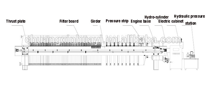 Plate-and-frame (type) filter press is a device for spasmic solid-liquid separation with plate, frame as filter room where liquid was transferred into by conveying pump, solid-liquid separation will be achieved by filter media.