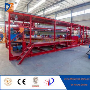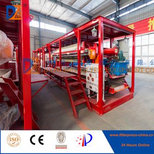 High efficiency filter press expended the length of cylinder and can discharge several cakes every time. The advantages: stable performance, high efficiency and lower running cost.