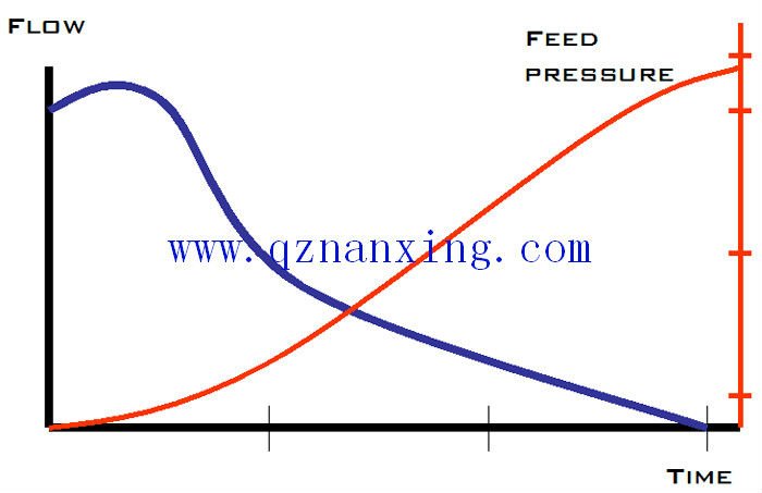 During the filtration, Relationship Between the flow rate of feeding pump and its feeding pressure: