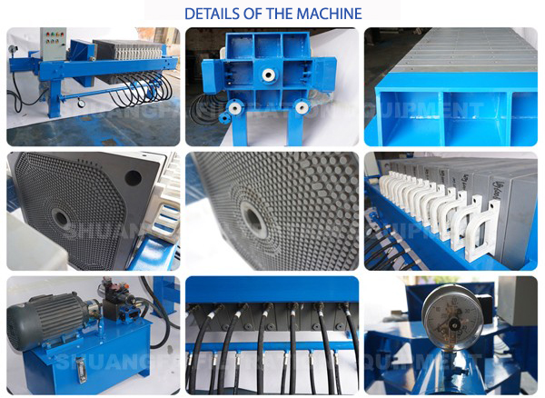 1, Automatic functions of press filter includes automatic compress the plates, automatic pressure keeping.