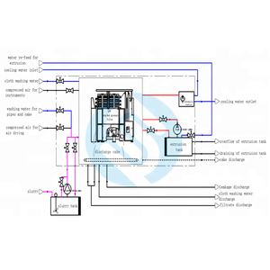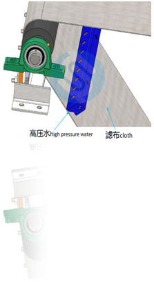 High pressure water washing cloth automatically to ensure the cloth recycle and prolong the cloth life time, reach higher filtering efficiency, and save water consumption of the equipment.