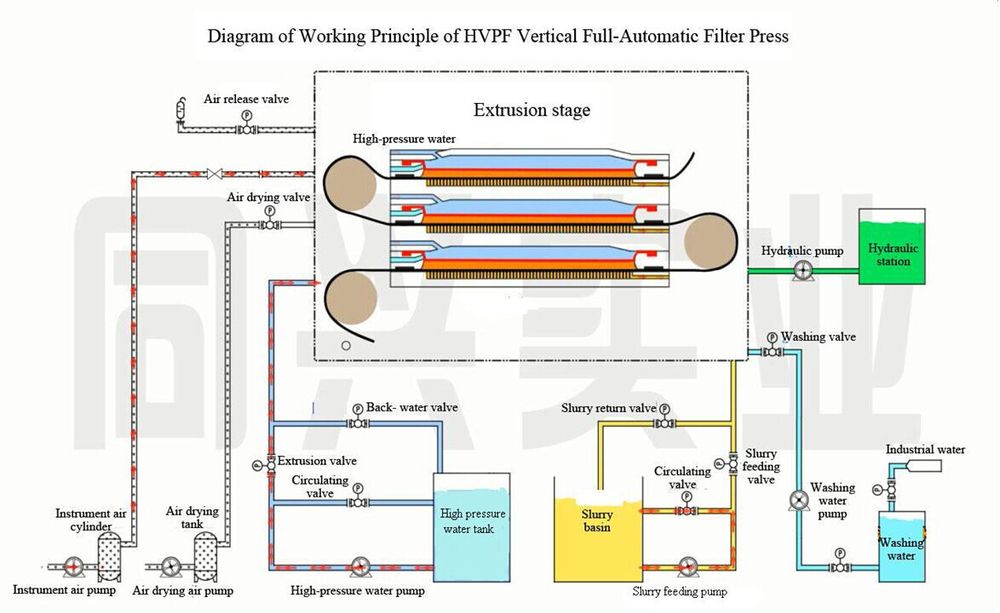 2) It can continuously automatically finish the operation in the process of filtering, extrusion, washing, drying, discharging and filter cloth regeneration.