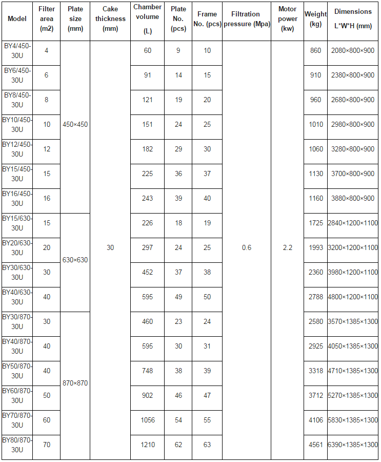 Chamber press filter for viscous materials require higher moisture and for users of this machine have their unique characteristics. Plate with enhanced molded polypropylene, polypropylene plate with diaphragm mounted together, sturdy, not easy fall off, long service life.