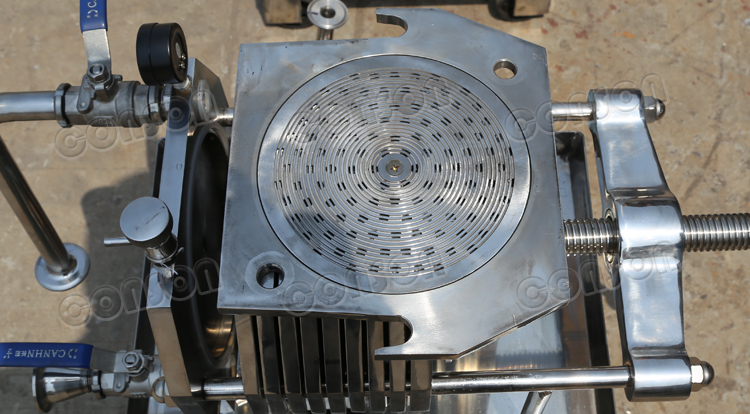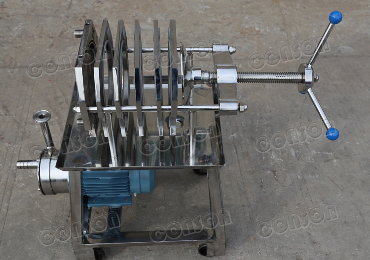 The plate and frame filter press is composed of 11pcs of movable stainless steel plate and 10 pcs of filter membrane, After loading the filter membrane on to the filter plate, It is tighten by the wheels and pressed together.