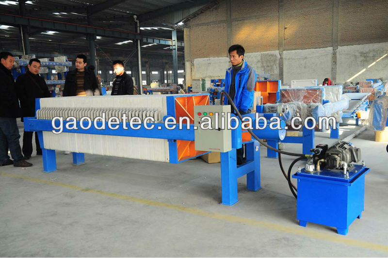 Hydraulic filter press use electrical-contact pressure meter to realize pressure keeping, so it has features of easy operation, stable performance, but the cakes are discharged manually. So it is suitable for the filter press which filtering area is not too big and don't have too many plates.